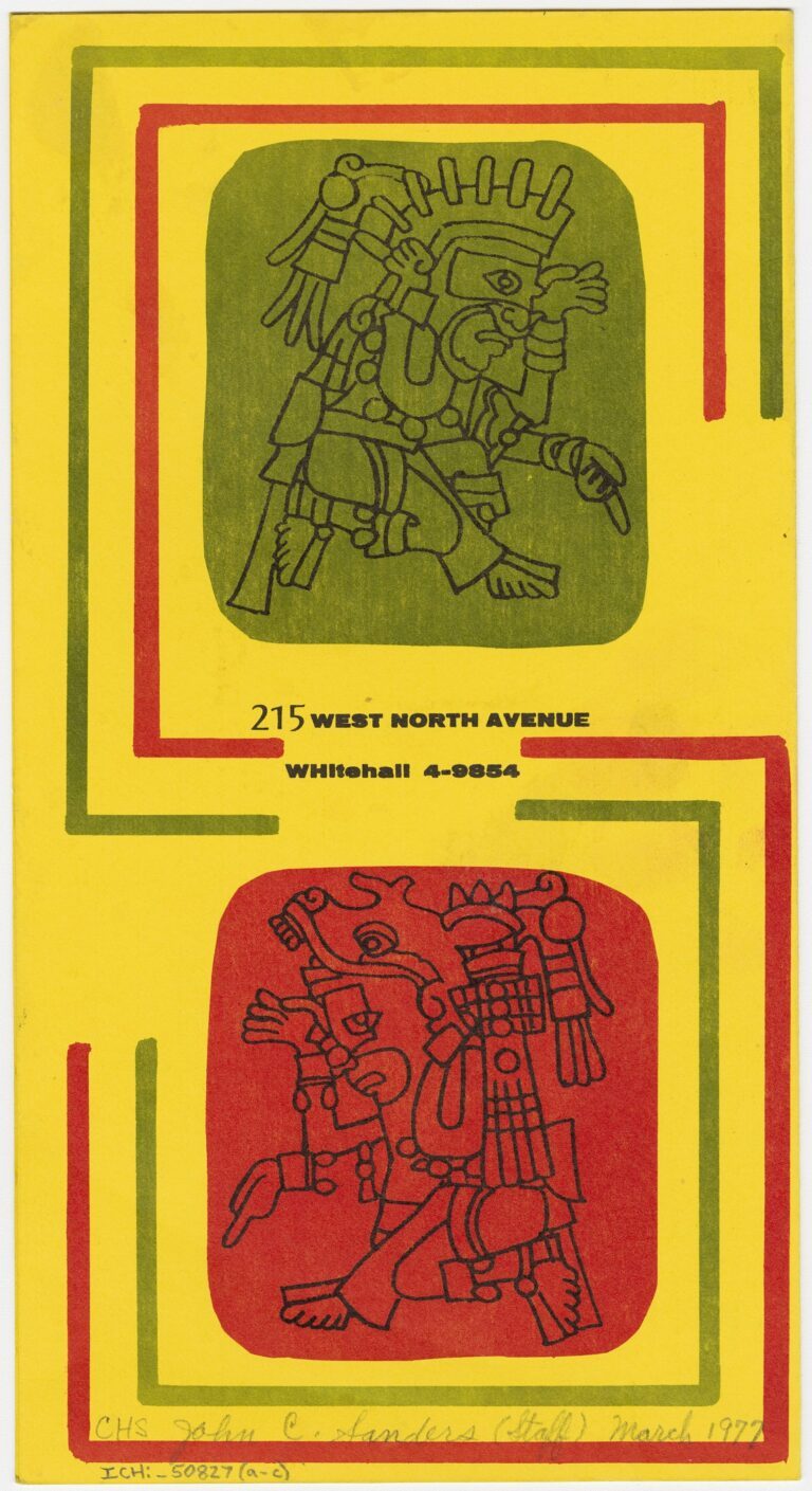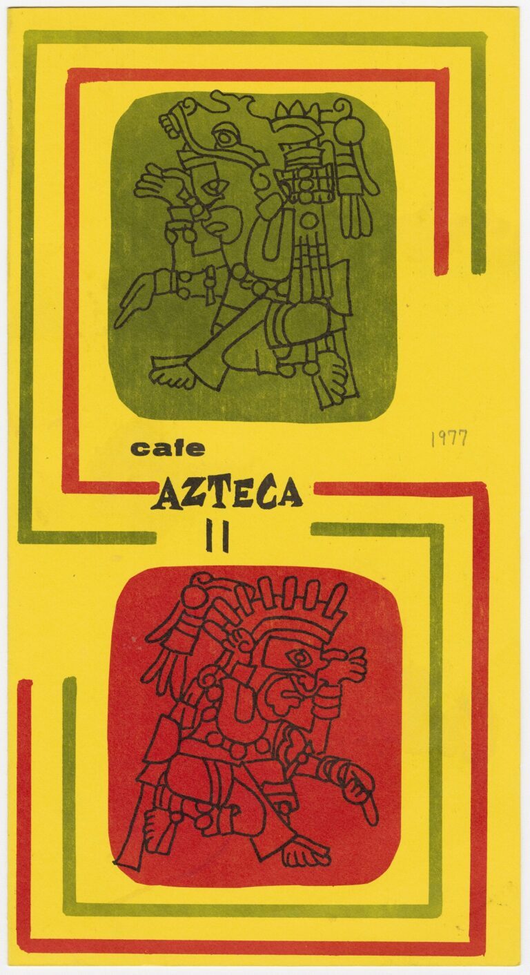 Front and back of menu from Cafe Azteca II at 215 West North Avenue, 1977. CHM, ICHi-050827-001 (left) and ICHi-050827-003 (right)