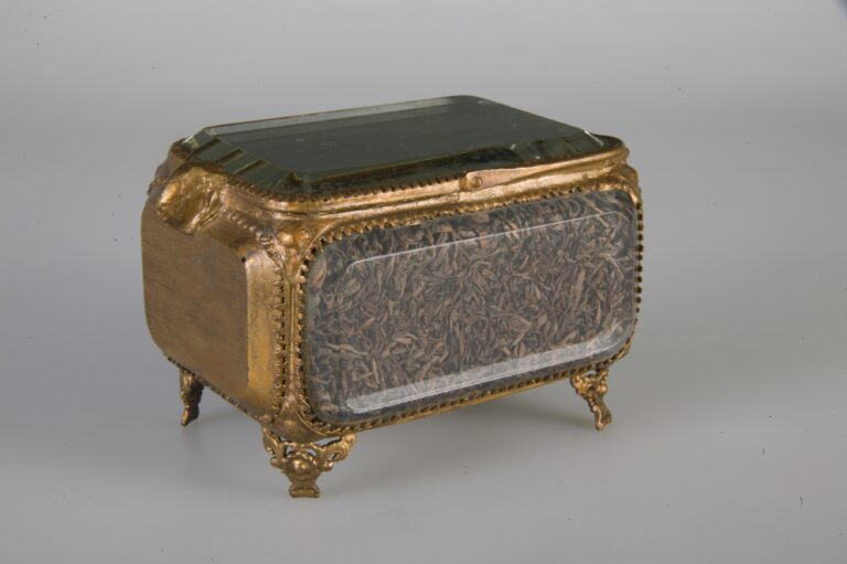Kennison’s brass tea caddy that supposedly contains tea leaves from the Boston Tea Party. CHM, ICHi-066833