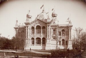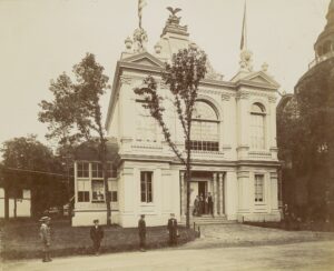 The Brazilian pavilion was designed by Francisco Marcelino de Sousa Aguiar in a French Renaissance style. The displays inside centered Brazil’s rich and abundant natural resources, including rubber and coffee.