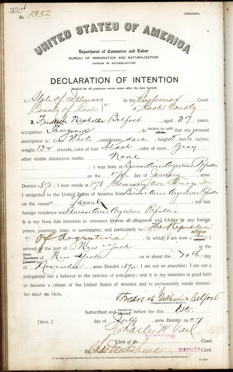Fredrich N. Belfort, an engineer from Argentina, 1907