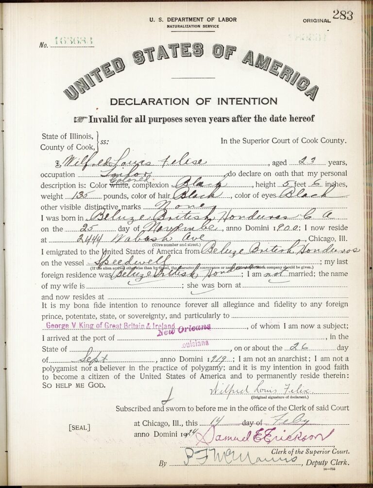 Wilfred Laures Felise, a tailor from Belize, 1924