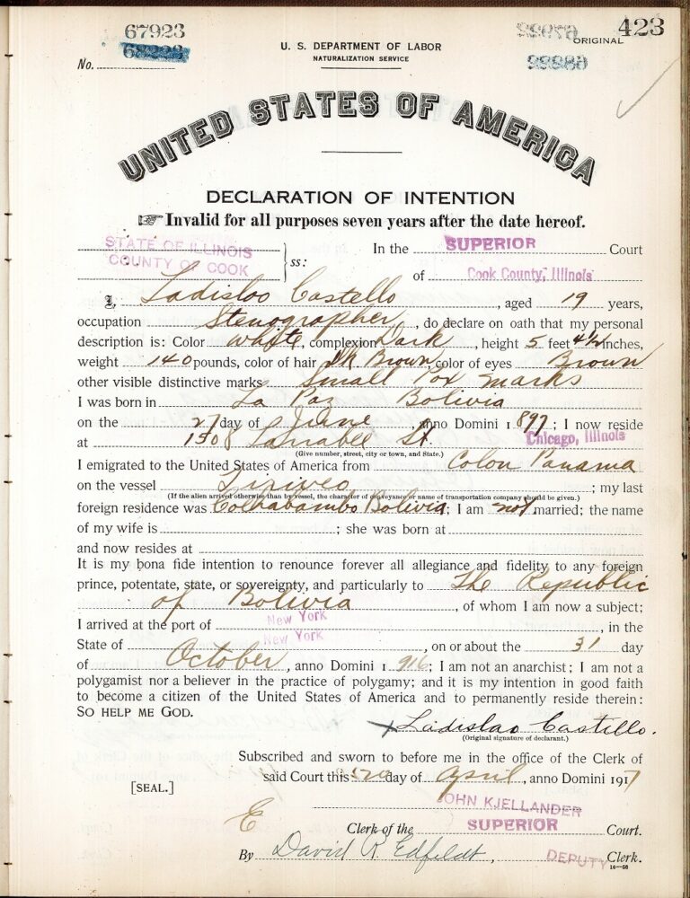 Ladislao Castillo, a stenographer from Bolivia, 1917