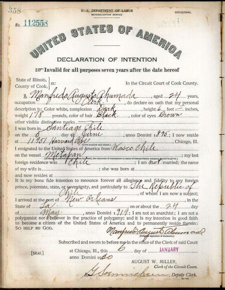 Manfredo Augosto Ahumada, a clerk from Chile, 1920