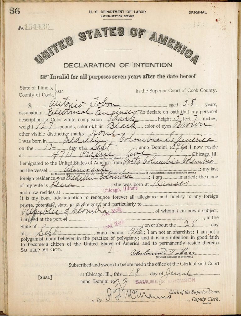 Antonio Jobon, an electrical engineer from Colombia, 1916