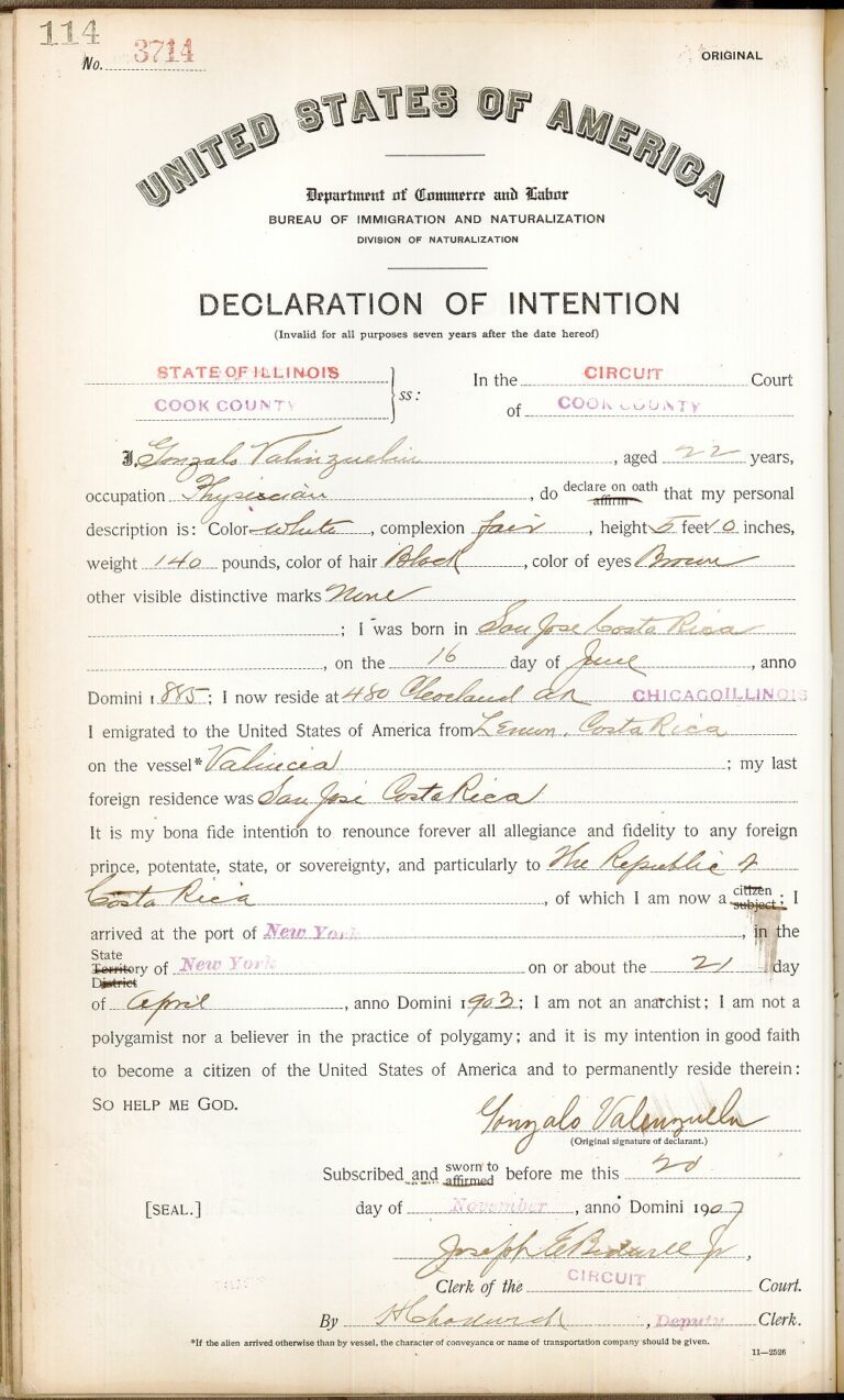 Gonzalo Valinzuelis from Costa Rica, 1903
