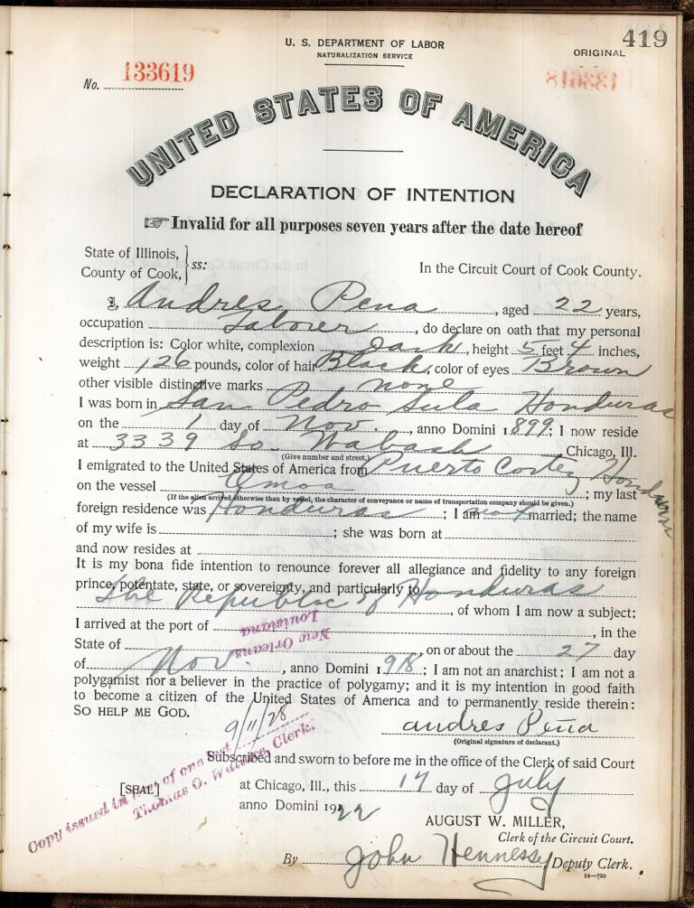Andres Pena, a laborer from Honduras, 1922