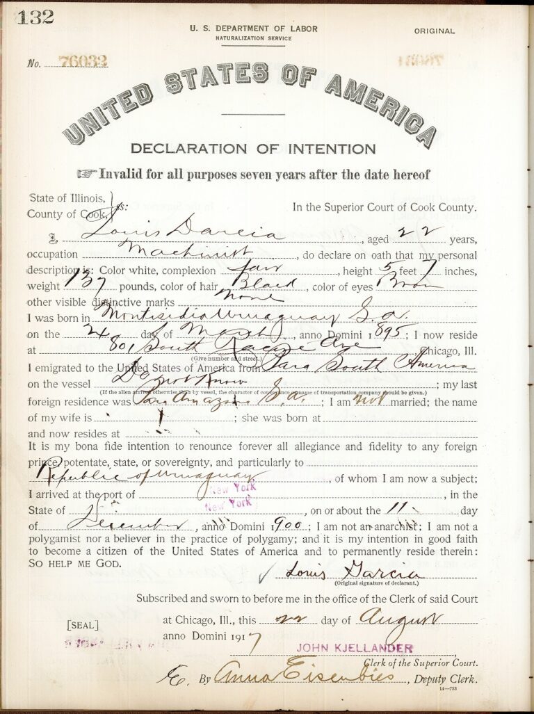 Louis Garcia, a machinist from Uruguay, 1917