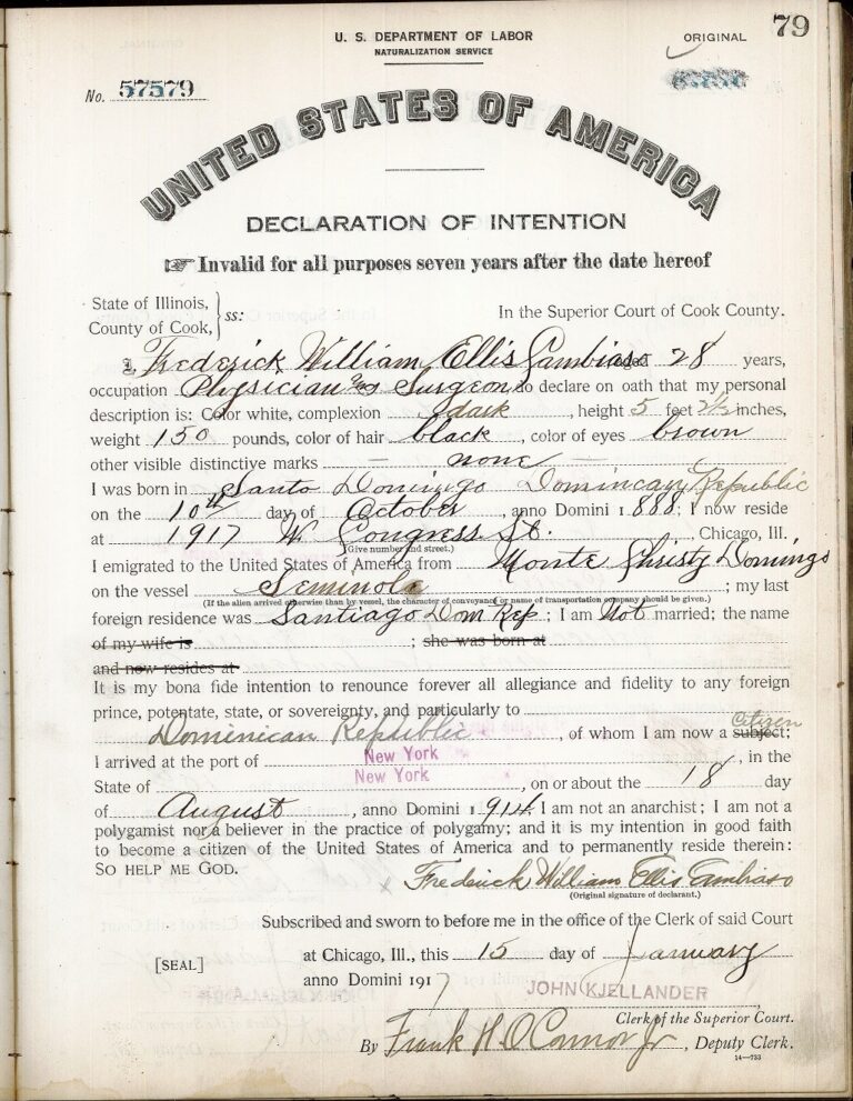 Frederick William Ellis Sambias, a physician and surgeon from the Dominican Republic, 1917