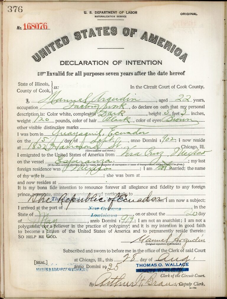 Manuel Argudin, a factory worker from Ecuador, 1925
