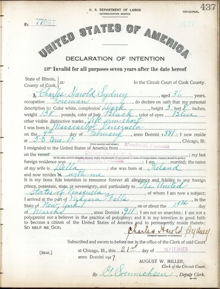 Charles Harold Sydney, a foreman from Venezuela, 1911