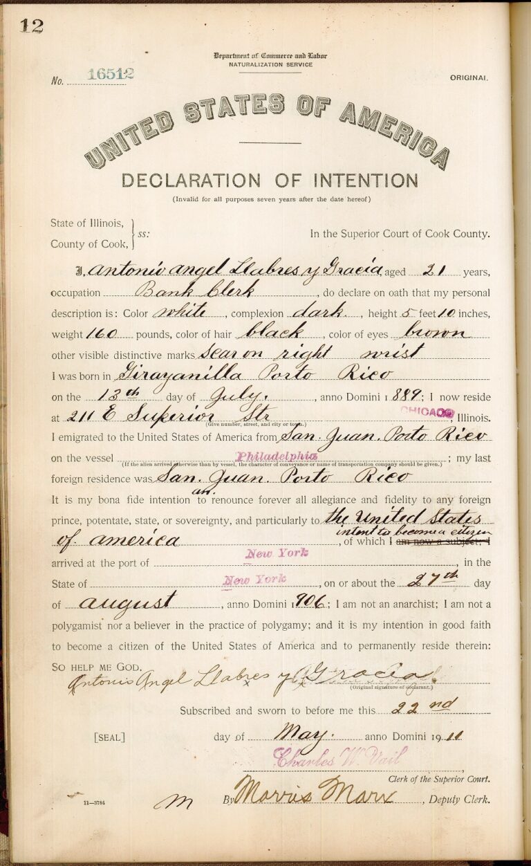 Antonio Angel Llabres y Gracia, bank teller from Puerto Rico, 1906