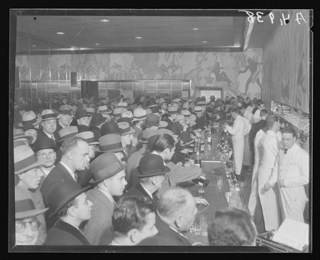 A crowd jams the bar in the Palmer House Hotel during the repeal of Prohibition, 17 East Monroe Street, Chicago, c. 1933. Photograph by the Chicago Daily News, Inc. DN-A-4938